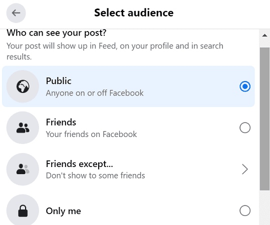 استخدم فئة “معارف” للأشخاص الذين تريد مشاركة أقل معهم. يمكنك استبعادهم بسرعة عند إضافة منشور جديد من خلال اختيار “أصدقاء باستثناء المعارف”.