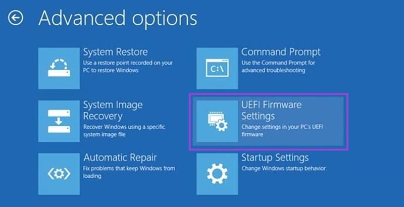 Paso 3: Haga clic en el botón “Reiniciar ahora” junto a la opción “Inicio avanzado”. Eso reiniciará su PC. Haga clic en el botón “Solucionar problemas”, cuando aparezca. Luego vaya a “Opciones avanzadas”, seguido de “Configuraciones del firmware UEFI”, y haga clic en “Reiniciar” nuevamente.