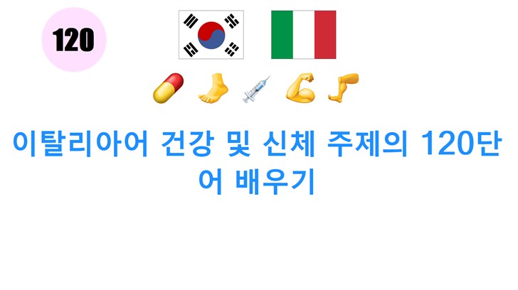 이탈리아어의 건강 및 신체 단어 120개를 배우고, 발음을 들으며 쉽게 익히세요.