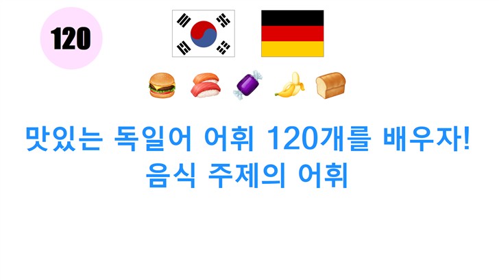 독일어 음식 주제의 120개 어휘를 배우고, 발음과 의미를 쉽게 이해하세요.