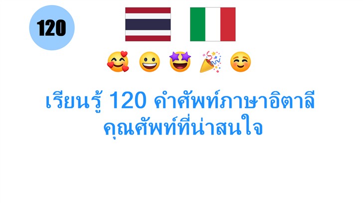 ค้นพบวิธีเรียน 120 จากศัพท์ภาษาอิตาลี ตามหัวข้ออุปกรณ์การเรียนรู้ พร้อมเสียงออดิโอที่เล่นได้เองหรือควบคุมได้ คำอธิบายความหมายและการออกเสียงที่ง่ายดาย เหมาะสำหรับคนไทยที่อยากพัฒนาภาษาอิตาลี