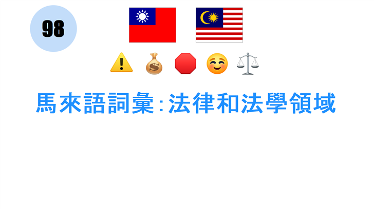 探索98個法律和法理領域的馬來語詞彙 在當今快速發展的社會中,掌握法律和法理領域的專業詞彙變得越來越重要。本文將介紹98個與法律相關的馬來語詞彙,幫助讀者提高在法律方面的專業素養。 詞彙特點