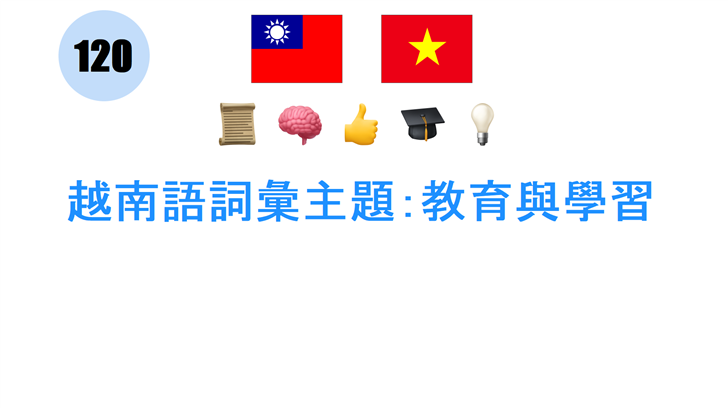探索越南語教育和學習詞彙在本篇文章中,我們將為你介紹120個與教育和學習相關的越南語詞彙,幫助你在學習過程中更好地掌握這門語言。這些詞彙包括了各種主題和概念,並且每個詞彙都附有音頻連結,讓你可以選擇主動收聽或自動播放,便於學習。詞彙範例以下是部分詞彙的例子,幫助你理解這些詞彙在日常生活中的應用: 活動