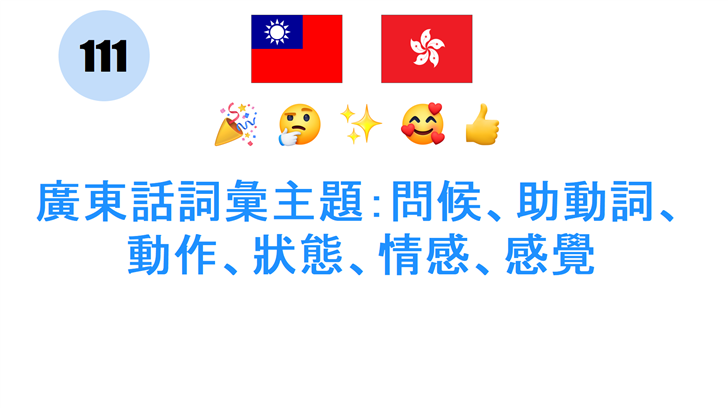 學習廣東話的104個詞彙在這篇文章中,我們將深入探索104個廣東話詞彙,涵蓋各種主題,包括顏色、形狀、數字、序數和時間。這些詞彙不僅能幫助你提升語言能力,還能讓你在日常交流中更加自信。顏色詞彙顏色是生活中不可或缺的一部分。在這個主題中,您將學到如黑色(黑色)、紅色(紅色)和紫色(紫色)等基本顏色詞彙。這些詞彙